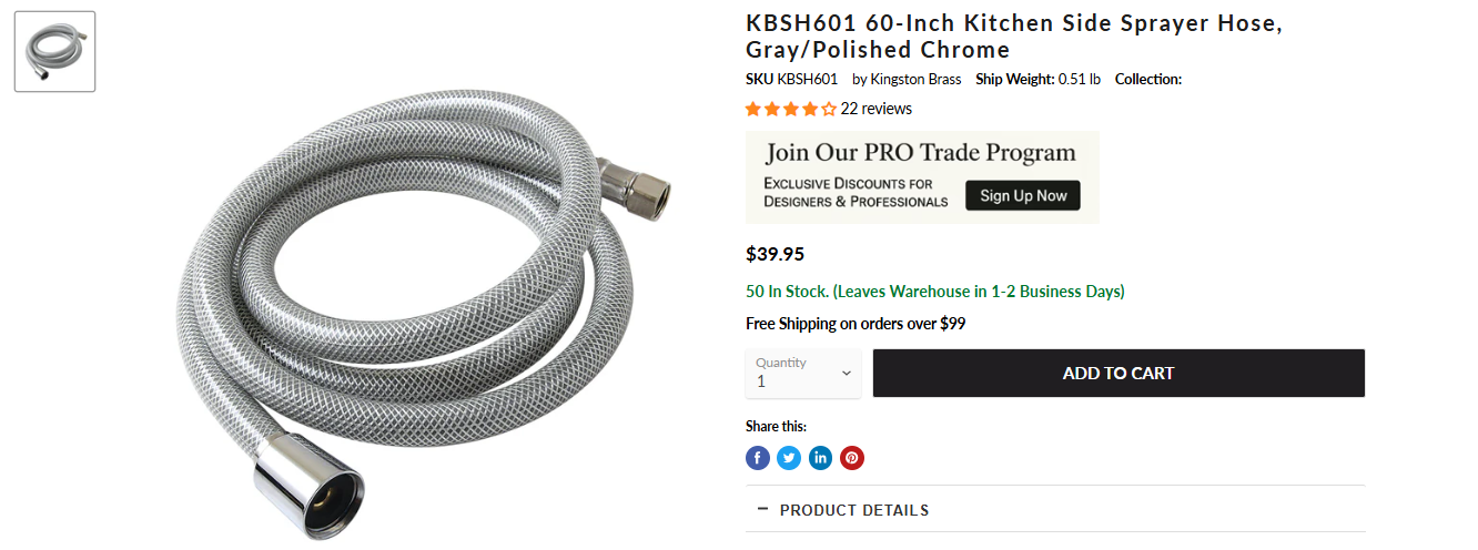Most of our kitchen faucet sprayers use the KBSH601 hose.